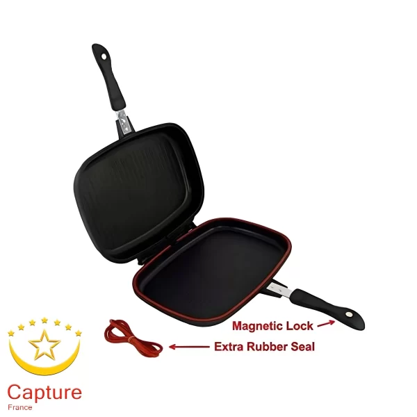 این ماهی تابه با صفحات نچسب، امکان تهیه غذاهای سالم و کمچرب را فراهم میکند. طراحی منحصر به فرد و کارآمد این محصول، سادگی در استفاده و تمیز کردن را فراهم میکند. این ماهی تابه دارای پایههای ضد لغزش است که قرارگیری آن بر روی کابینت و سطوح مختلف را آسان میکند.